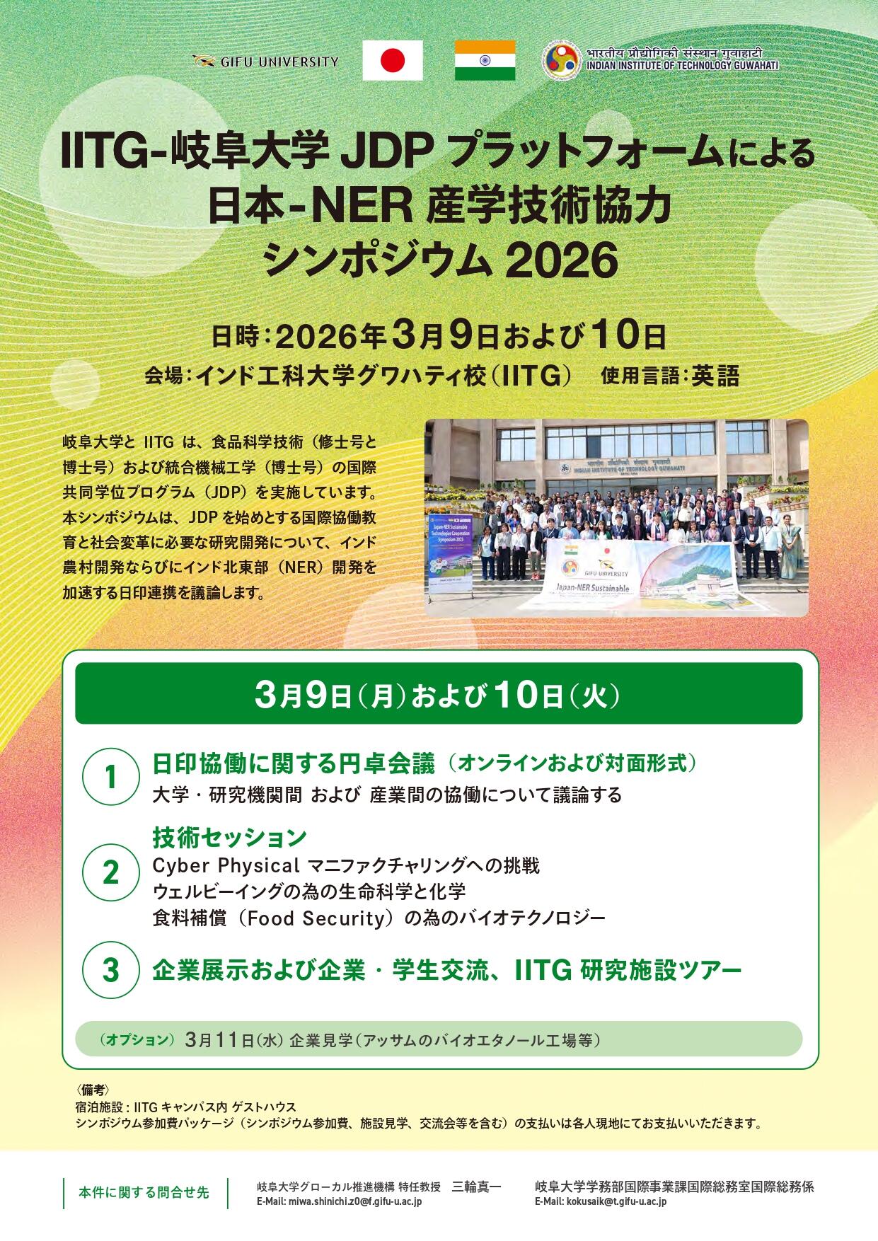 <タイトル>IITG-岐阜大学JDPプラットフォームによる日本-NER産学技術協力シンポジウム2026