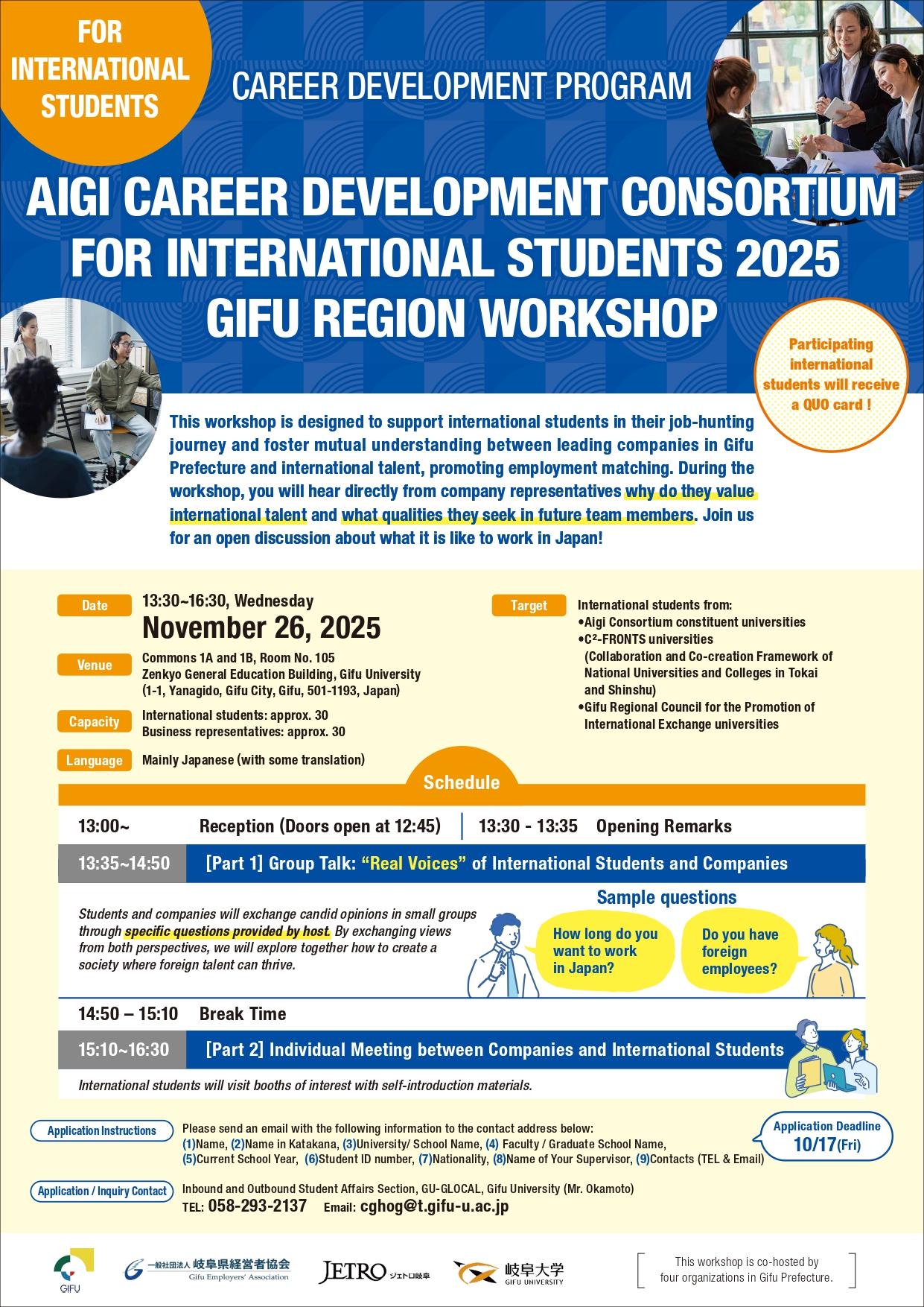 Gifu Region Workshop will be held by Aigi Career Development Consortium for International Students 2025
