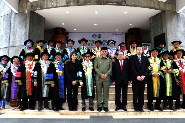 マレーシアに引き続き、インドネシアのアンダラス大学も訪問しました。アンダラス大学は、本学との大学間学術交流協定校の中で最も長い歴史を持っています。同大学において、Efa Yonnedi学長、Syukri Arief副学長らとの懇談を実施し、翌日に行われた創立記念行事にて、吉田学長がこれまでの医学分野における貢献・業績や今後の展望、岐阜大学および東海国立大学機構の特色について、アンダラス大学教職員及び学生に向けた基調講演を行いました。