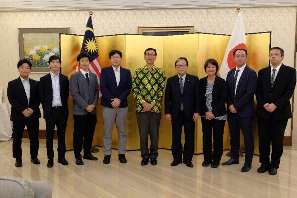 さらに、在マレーシア日本国大使館を訪問し、四方敬之 特命全権大使はじめ、JDPガイドライン作成に携わり、本学のJDP設置に支援いただいた北岡龍也 参事官、岐阜県庁から出向中の安江俊二 三等書記官らと、マレーシアにおける大学の展開について懇談しました。