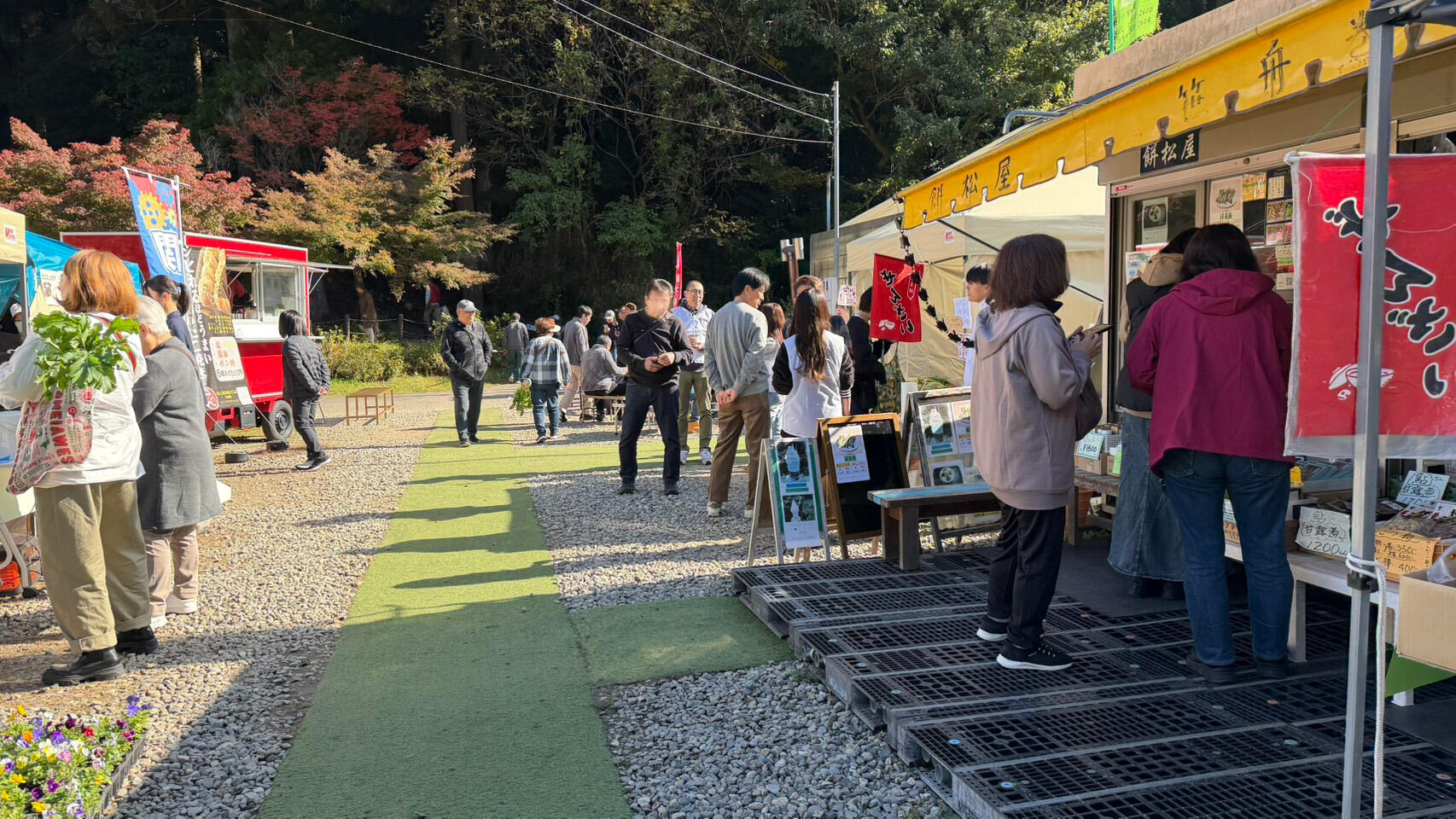 学生らは、フラワーパーク板取、モネの池環境整備委員会、関商工高等学校、地元企業、飲食店、生産者、関市役所などを訪問し、イベント運営について調整を重ねました。また、来訪者がくつろげる環境づくりとして、株式会社タイメックの技術的な支援のもと、高校生と共同でベンチを製作しました。完成したベンチは、イベント当日に関市に寄贈し、フラワーパーク板取敷地内に設置されました。