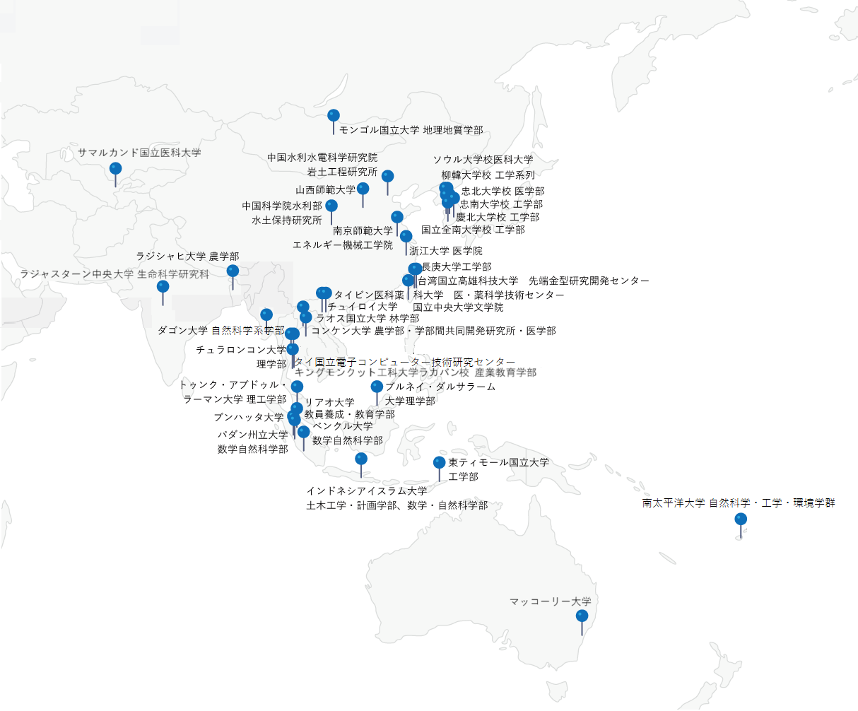 大学間:20か国51大学、部局間:29か国1地域61部局(令和8年3月13日現在)